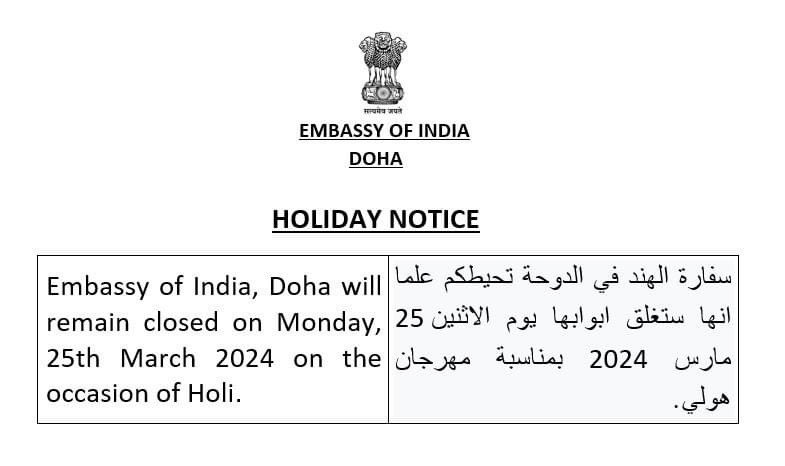 India in Qatar on X: “Holiday notice https://t.co/XocAniLknE” / X